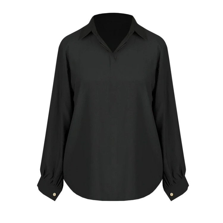شومیز آستین بلند یقه برگردان زنانه مدل بیسیک کرپ کد AK1283