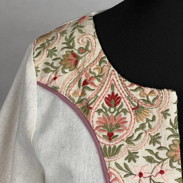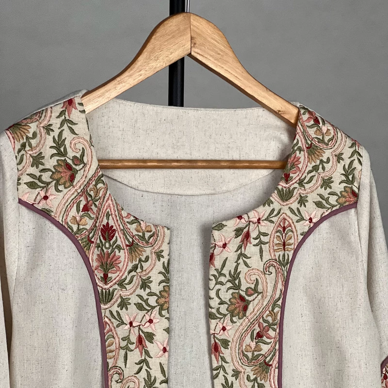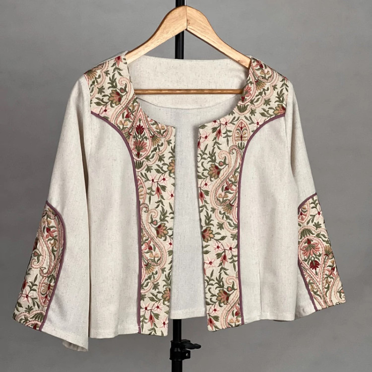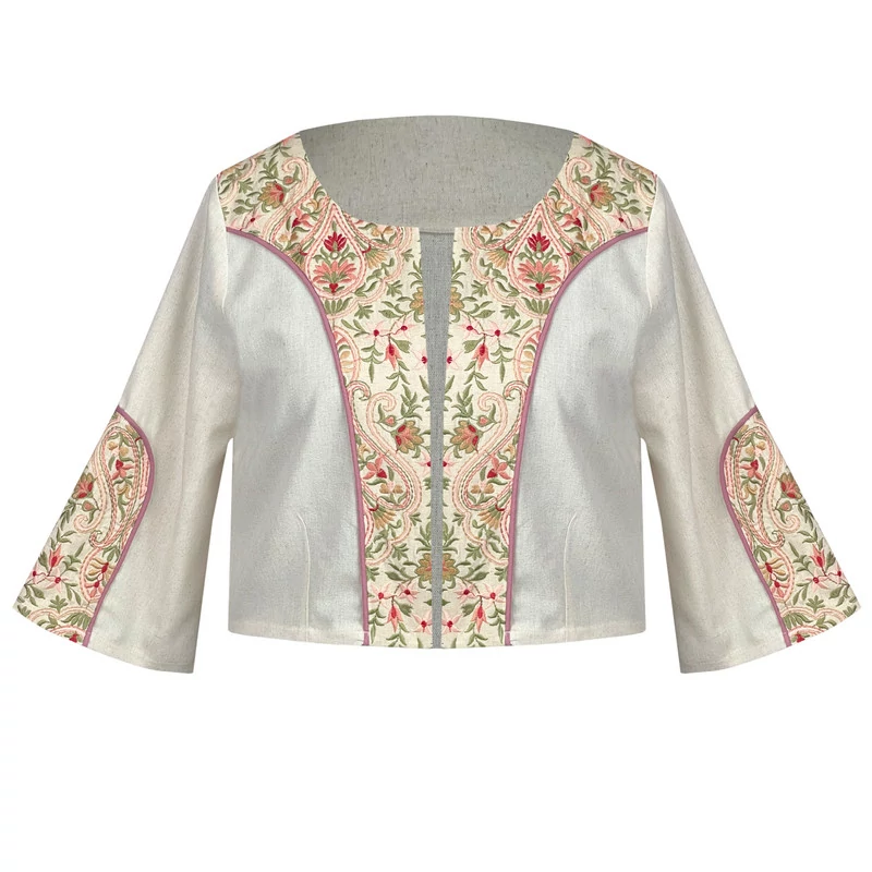 کراپ کت رسمی زنانه مدل لینن خرج کار گلدوزی سنتی کد AK1564