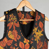 جلیقه رسمی زنانه مدل کتان ژاکارد برگی کد AK1561